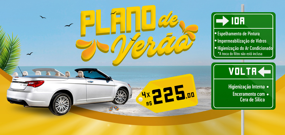 Você contrata antes de ir viajar: Espelhamento de Pintura, Impermeabilização de Vidros, Higienização do Ar Condicionado; e na sua volta ganha: Higienização Interna, Enceramento com cera com sílica! Tudo em 4 parcelas de R$225,00! Aceitamos todos cartões, exceto banricompras.